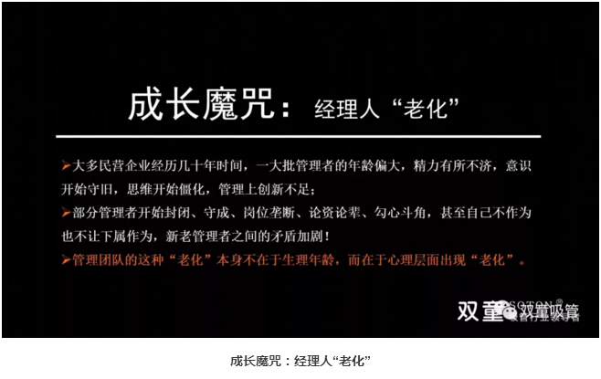 公司創(chuàng)辦初期聘任部分原國營企業(yè)的下崗管理層,這些人客觀上在企業(yè)發(fā)展中做出了巨大的貢獻。但到了2010年前后,其中的大部分管理層逐漸出現(xiàn)了“認知時間軸瓶頸”:他們依托于習慣思維,完全憑經(jīng)驗用老方法解決新問題,不愿意學習,創(chuàng)新意識低下,抵制變革,拒絕接受和應用新興事物,團隊的成長遇到了瓶頸。