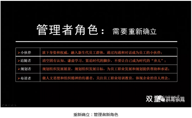 追隨者:管理者應清空固有認知,謙虛向年輕人學習,緊追時代步伐,不要讓自己成為時代的“棄兒”;