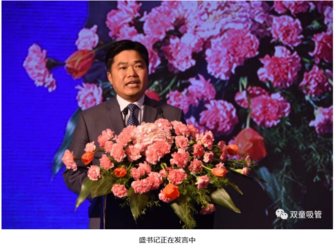 首先,義烏市委書記盛秋平先生發(fā)表了義烏工業(yè)經(jīng)濟(jì)發(fā)展報(bào)告,寄語(yǔ)義烏企業(yè)家,要把握機(jī)遇、奮發(fā)勇為,弘揚(yáng)“雞毛換糖”精神,開創(chuàng)新時(shí)代新征程,在發(fā)言中還著重點(diǎn)贊了“雙童”的標(biāo)準(zhǔn)創(chuàng)新工作!