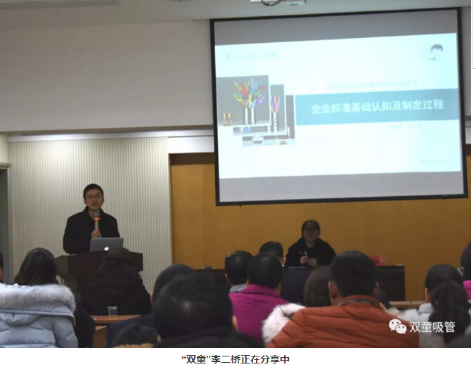 在年會(huì)中有一項(xiàng)重要議程,就是由“雙童”總經(jīng)理李二橋?yàn)榇蠹規(guī)怼镀髽I(yè)標(biāo)準(zhǔn)基礎(chǔ)認(rèn)知及制訂過程》的課程分享!在介紹了標(biāo)準(zhǔn)工作的制定過程和對(duì)企業(yè)的意義作用后,李總也鼓勵(lì)在座企業(yè)主們,不管是經(jīng)營什么企業(yè)、制造什么產(chǎn)品,都應(yīng)該盡可能地爭取和參與到標(biāo)準(zhǔn)制定工作中,在規(guī)則的制定過程中搶占“制高點(diǎn)”,在同類產(chǎn)品的市場(chǎng)競爭中贏得先機(jī),為自身企業(yè)的發(fā)展贏取更高平臺(tái)!李總干貨滿滿的分享也獲得了現(xiàn)場(chǎng)會(huì)員們的熱烈掌聲!