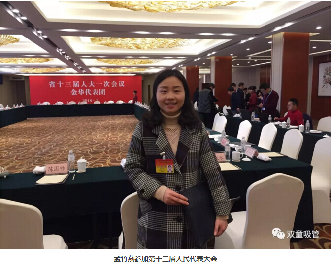 孟竹燕,女,來(lái)自陜西西安,2010年從老家西安到義烏打工,是雙童吸管一位平凡的90后員工。2017年被推選為浙江省人大代表,代表金華的農(nóng)民工群體參加2018年省人代會(huì)。