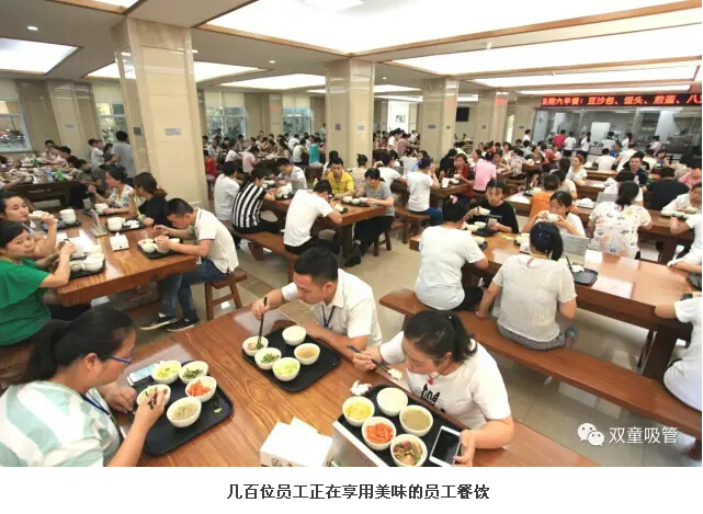 來到員工餐廳時(shí),大家就被餐廳內(nèi)精致的硬件吸引,表示沒有想到員工餐廳也會(huì)有如此好的環(huán)境!吸管妞也向同學(xué)們介紹道:“‘雙童’是倡導(dǎo)‘家文化’的企業(yè),不僅為員工提供免費(fèi)餐飲,還提供免費(fèi)住宿。在餐廳,員工每天都能享用出優(yōu)質(zhì)可口的餐飲,我們也鼓勵(lì)員工家屬在餐廳就餐并享受半價(jià)優(yōu)惠!”在聽了吸管妞的介紹之后,帶隊(duì)老師幽默地表示“雙童”包吃包住,真是實(shí)現(xiàn)了“共產(chǎn)主義”!