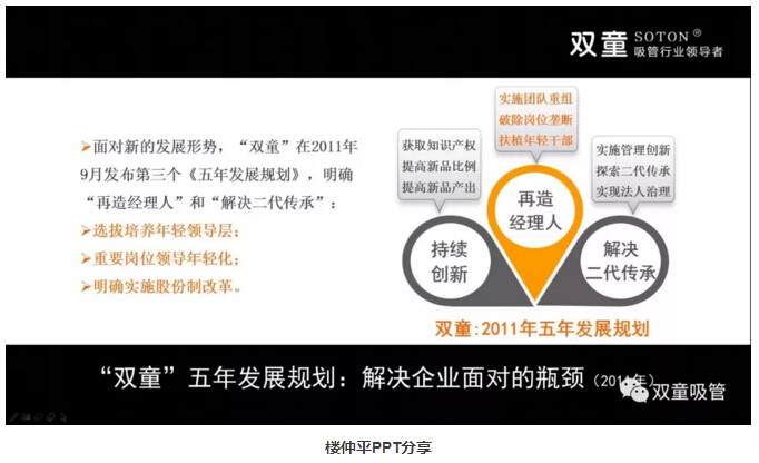 “經(jīng)理人老化”和“二代傳承的不確定性”被樓仲平視為中國民營企業(yè)面臨的兩座大山,許多同時代企業(yè)正是被這兩座大山阻住了去路。對“雙童”來說,第一座大山已基本翻越成功,目前正在為翻越第二座大山做準(zhǔn)備。