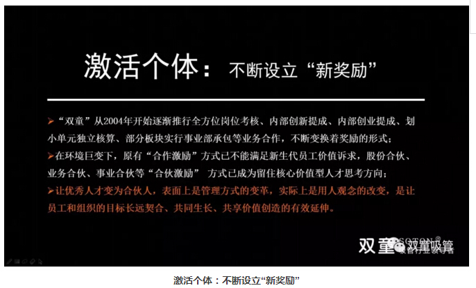 團隊問題基本解決,“雙童”恢復(fù)了兩年高增長,然而新的壓力很快到來。2015年,“”雙童的增長速度放緩到10%,2016年進一步放緩,外部世界的快速變化與新生代員工的新訴求促使樓仲平重新思考,2015年前后他開始著手在環(huán)境、機制上做文章。