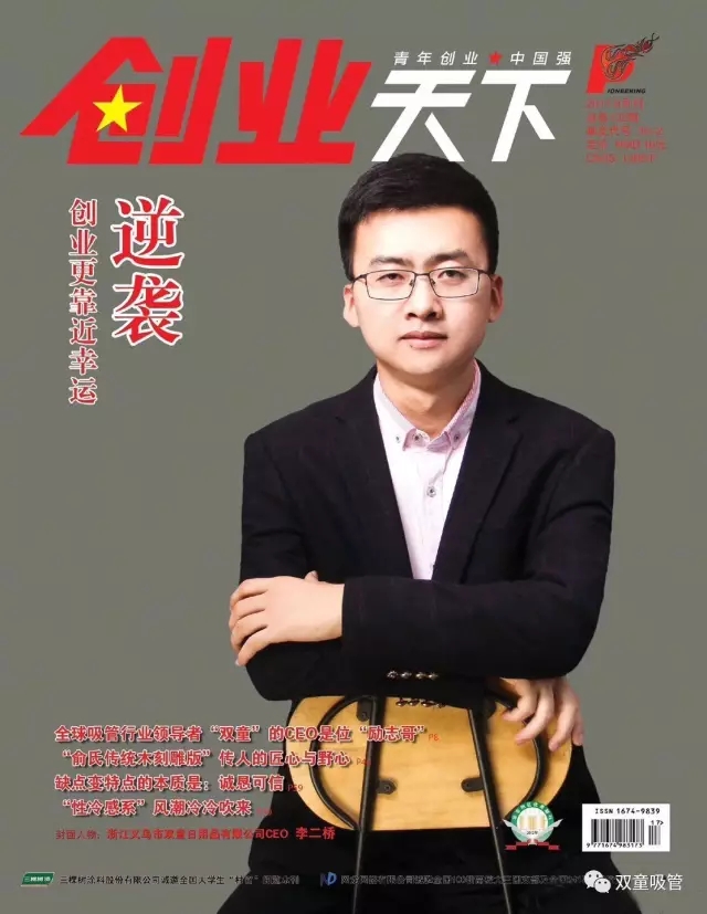 今天,吸管妞和大家分享著名雜志《創(chuàng)業(yè)天下》的封面新聞!這篇新聞講述了“雙童”李二橋從一個(gè)農(nóng)村毛頭小伙成長為全球吸管王國CEO的勵(lì)志經(jīng)歷。下面,吸管妞就帶大家來看看吧!