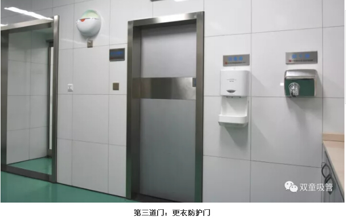 3.經(jīng)過了兩道防護門后,員工們更衣后通過更衣防護門進入洗手消毒區(qū)域。