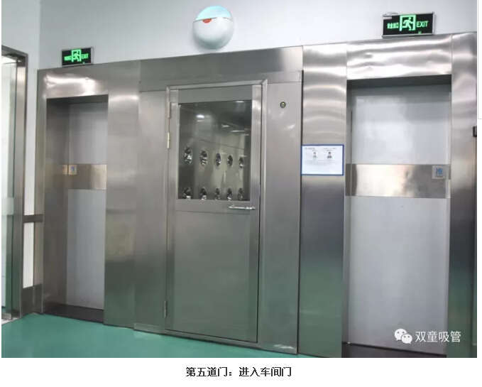 5.員工們風(fēng)淋后經(jīng)過第五道車間入口門,進入車間進行生產(chǎn)工作。