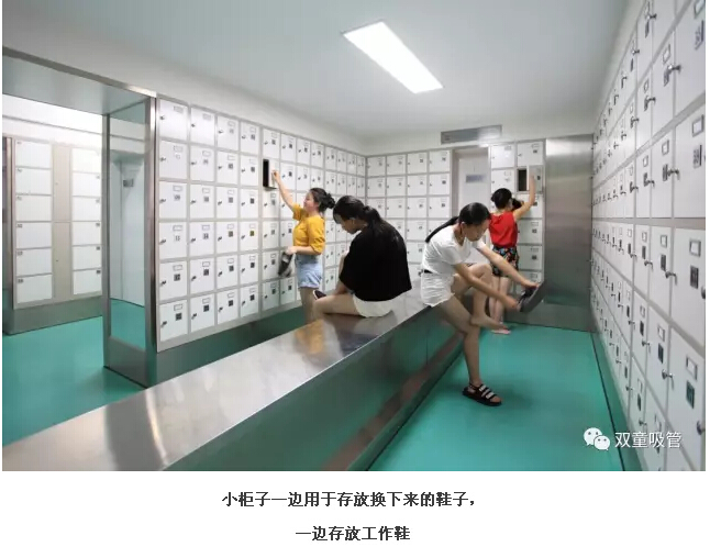 1、員工進入車間的第一步,就是要在更鞋區(qū)將自己的鞋子換為工作鞋。