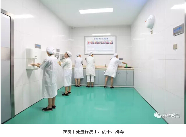 在“雙童”,每位員工在進入車間前,都要按照規(guī)范進行消毒防護措施,過五道門六道關(guān)卡才能進入車間工作: