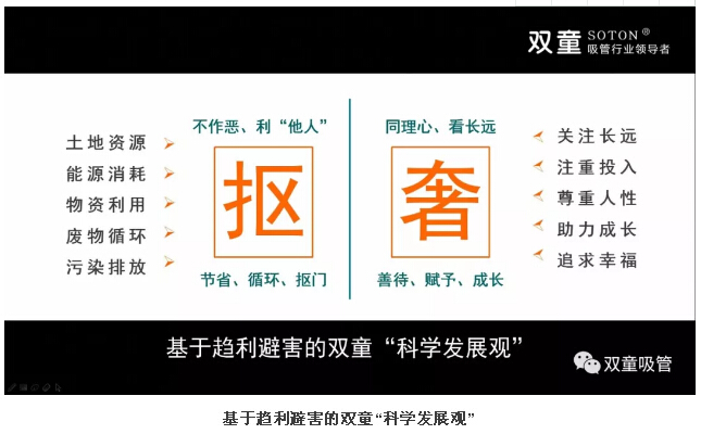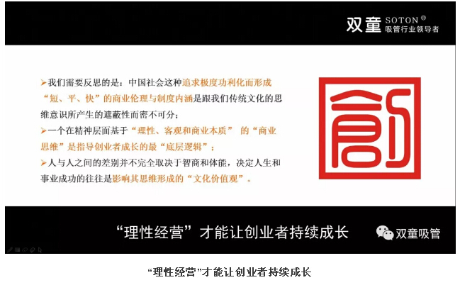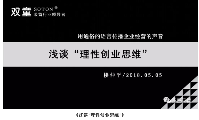 當(dāng)我們透過(guò)現(xiàn)象看本源,雙童的“創(chuàng)業(yè)觀”,實(shí)質(zhì)是單點(diǎn)突破、拉大尺度、尋求質(zhì)變、基于長(zhǎng)遠(yuǎn)發(fā)展的“理性思維”,實(shí)質(zhì)是“理性思維”下的“科學(xué)發(fā)展觀”!