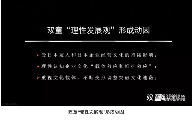 “雙童”之所以有“理性發(fā)展觀”,實(shí)際上是受日本企業(yè)經(jīng)營(yíng)文化的持續(xù)影響,理性認(rèn)知企業(yè)文化“載體效應(yīng)和維護(hù)效應(yīng)”,重視文化載體,不斷變形調(diào)整突破文化遮蔽!