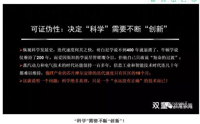 關(guān)于到底什么是“科學(xué)”?著名經(jīng)濟(jì)學(xué)家波普爾提出了“證偽主義科學(xué)論”對(duì)“科學(xué)”進(jìn)行了界定:凡是能夠證明是錯(cuò)了的學(xué)問(wèn)才能叫“科學(xué)”,并用極厚的一本書(shū)作了系統(tǒng)證明,這跟我們平常的理解正好相反。這就說(shuō)明一個(gè)問(wèn)題:科學(xué)絕非真理,只是一個(gè)“永遠(yuǎn)沒(méi)有正確”的技術(shù)而已!“科學(xué)”需要不斷“創(chuàng)新”!