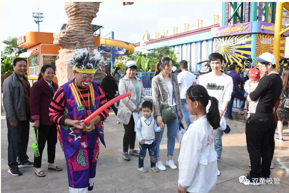 在園區(qū)內(nèi),還可以隨處看到馬戲團的表演哦!小丑們獻上各自的絕活,雜技、魔術(shù)、泡泡秀……各類表演讓“雙童”人們連連叫好!