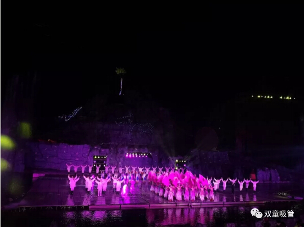 現(xiàn)場的演出更加震撼,龐大的演員陣容、唯美壯觀的場景、炫彩奪目的造型服裝、激情澎湃的主題音樂、引人入勝的故事情節(jié),震撼每一位看客。“雙童”的小伙伴們看的也很投入呢!