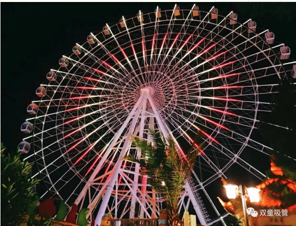 看完演出出來,夜色已晚,在夜幕的襯托下,光彩動人的燈光讓樂園更夢幻!夜晚的摩天輪很美麗,一覽夜色斑斕,美不勝收!