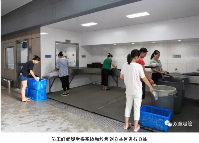 就餐完后,員工們會(huì)將所有的殘?jiān)屠鴰ё?,到分揀區(qū)進(jìn)行分揀歸置。碗筷該如何擺放、飯菜殘?jiān)绾畏謷?/span>…… 員工們都養(yǎng)成了規(guī)范意識(shí)。所以我們的餐桌還是十分干凈,下一批就餐員工可以直接就餐,不需要阿姨擦拭。