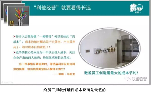 許多來(lái)“雙童”的客人都會(huì)問(wèn)吸管妞一個(gè)問(wèn)題:“雙童”在資源方面如此“摳門”,又是節(jié)水,又是節(jié)能,為什么要對(duì)硬件配置要求這么高?連一張餐廳里的餐桌都要1.5萬(wàn)元!用這么高的成本經(jīng)營(yíng),至于嗎?“雙童”當(dāng)家人樓仲平曾對(duì)此疑問(wèn)作回應(yīng):當(dāng)員工用最好硬件時(shí)成本反而是最低的。一向節(jié)省的當(dāng)家人為何會(huì)這么說(shuō)?今天,吸管妞就從這張餐桌入手,和大家分享一下“雙童”的經(jīng)營(yíng)理念!