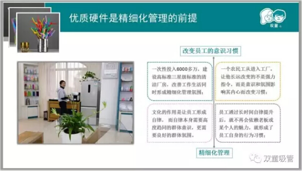 另一方面,“雙童”給員工用五星級(jí)的硬件,也是引導(dǎo)員工改變自身的思維和行為方式,讓員工關(guān)注細(xì)節(jié)!質(zhì)量是用“心”做出來(lái)的,通過(guò)這樣的氛圍影響員工的內(nèi)心,員工的素質(zhì)和質(zhì)量意識(shí)才能進(jìn)一步提升,有高品質(zhì)的硬件為基礎(chǔ),員工才能生產(chǎn)出高品質(zhì)的產(chǎn)品!看到這里,大家應(yīng)該明白為什么“雙童”的員工餐桌要這么貴了吧!
