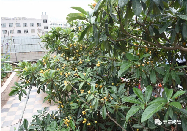 屋頂?shù)蔫凌藰?shù)上黃橙橙的枇杷掛滿一片,十分誘人!