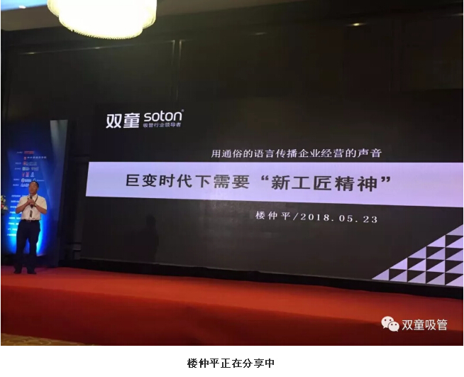 頒獎(jiǎng)盛會后,“雙童”樓仲平在“中國制造·隱形冠軍”年度峰會上做了《巨變時(shí)代下需要“新工匠精神”》的主題分享。