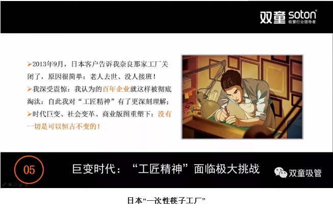 首先,“雙童”樓仲平分享了日本奈良“一次性筷子工廠”的故事及日本企業(yè)存在的“致命”問題。如今,日本推崇極致“工匠精神”的企業(yè)被逐漸淘汰。另外,極致的“工匠精神”也讓日本年輕人不愿意接班,經(jīng)營層老齡化成為日本中小企業(yè)的突出特征!