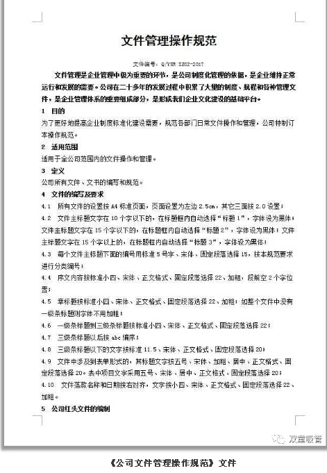 通過這份文件,我們統(tǒng)一了企業(yè)文件的編寫要求,從而明確指導(dǎo)各部門在形成、修訂、補(bǔ)充和更新文件時的統(tǒng)一規(guī)范!換句話說,無論是“雙童”多少位科室員工寫的文件,打開一看都像是一個人寫的文件!