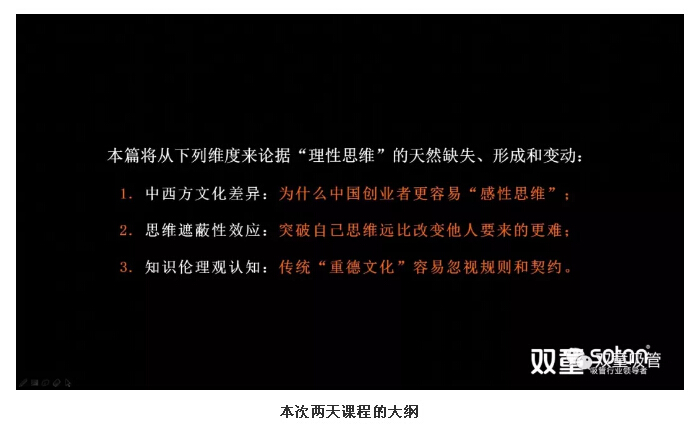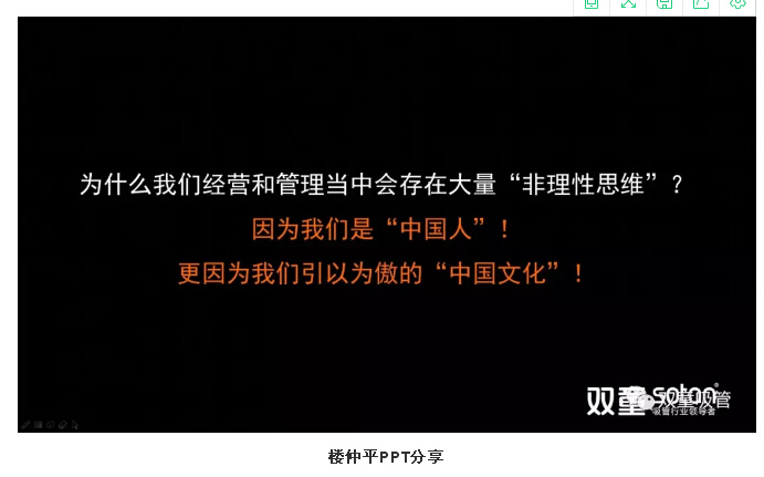在當(dāng)今巨變社會(huì)下,“變”成為這個(gè)時(shí)代沒(méi)有選擇的“選擇”!唯有“突破遮蔽”,將中西方文化相融合,創(chuàng)業(yè)者及管理者們才能打破自身瓶頸!在接下來(lái)的課程當(dāng)中,樓仲平將重點(diǎn)分享《中國(guó)“重德文化”下容易忽視的規(guī)則和契約》,引導(dǎo)大家突破“道德”認(rèn)知、回歸“理性”本源,實(shí)現(xiàn)真正的科學(xué)發(fā)展觀!敬請(qǐng)期待吧!