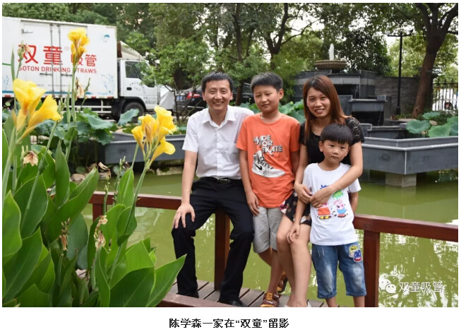 事業(yè)蒸蒸日上的同時,陳學(xué)森也在“雙童”有一個幸福小家庭。2013年,陳學(xué)森把老婆張新宇也接來“雙童”上班,每逢暑假,他們的兩個兒子也會到“雙童”和父母團(tuán)聚,一家人在一起其樂融融。2016,陳學(xué)森也購置了他心儀已久的車子,圓了他的一個夢。