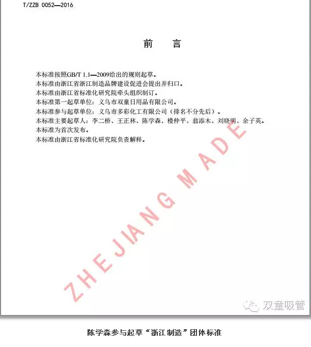 現(xiàn)在,陳學(xué)森主要負(fù)責(zé)客戶審廠、質(zhì)量檢驗(yàn)、產(chǎn)品衛(wèi)生防護(hù)、掌握產(chǎn)品動態(tài),收集質(zhì)量信息等工作。2016年,他還參與了“浙江制造”團(tuán)體標(biāo)準(zhǔn)《聚丙烯飲用吸管》的起草工作,為企業(yè)又拿到了一頂標(biāo)準(zhǔn)方面的桂冠!這也意味著經(jīng)過這些年的努力,他終于從一個基層員工真正成長為吸管行業(yè)的專家。