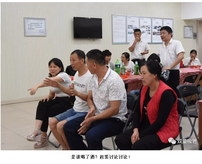 現(xiàn)場(chǎng)最有趣的就屬“猜猜誰(shuí)喝了酒”的小游戲啦!兩個(gè)團(tuán)隊(duì)進(jìn)行PK,猜中對(duì)方團(tuán)隊(duì)中誰(shuí)喝了白酒即為獲勝。喝完“水”和“酒”后,有些隊(duì)員臉上的表情沒(méi)有任何變化,有些隊(duì)員拼命在掩飾……兩輪游戲過(guò)后,居然沒(méi)有任何一隊(duì)猜中了喝酒者??磥?lái),要給大家都頒一個(gè)“奧斯卡小金人”獎(jiǎng)項(xiàng)呀!
