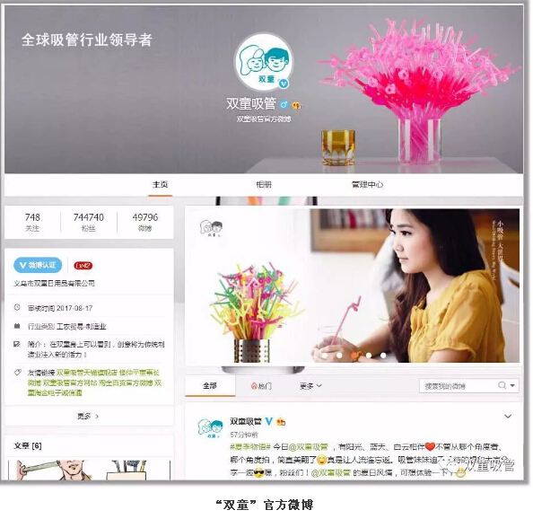 在許多人的印象中,像吸管這樣的小商品無足輕重,不值得去做品牌。“雙童”經(jīng)過24年的努力,在塑造品牌過程中不斷探索實(shí)踐,采用新媒體等創(chuàng)新思維進(jìn)行品牌文化傳播,硬是把一個(gè)看似不可能的產(chǎn)品創(chuàng)造出大品牌,從而形成了“雙童”如今廣為人知名揚(yáng)天下的品牌效應(yīng)!