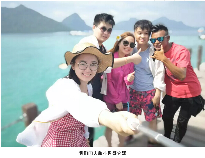第二個(gè)島是珍珠島,原本是要爬一座小山,可以看到很美的風(fēng)景。但是到達(dá)后,小黑哥了解了情況后告知:昨天下了大雨,山上太滑,不能爬山。聽(tīng)說(shuō)了這個(gè)“壞消息”,我這個(gè)向來(lái)不愛(ài)爬山的人放下了心里的大包袱,哈哈!小黑哥說(shuō),我們可以在島上停留20分鐘,給我們拍照留念。于是,所有人都默默拿出手機(jī)開(kāi)始拍照片……