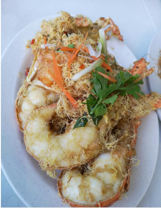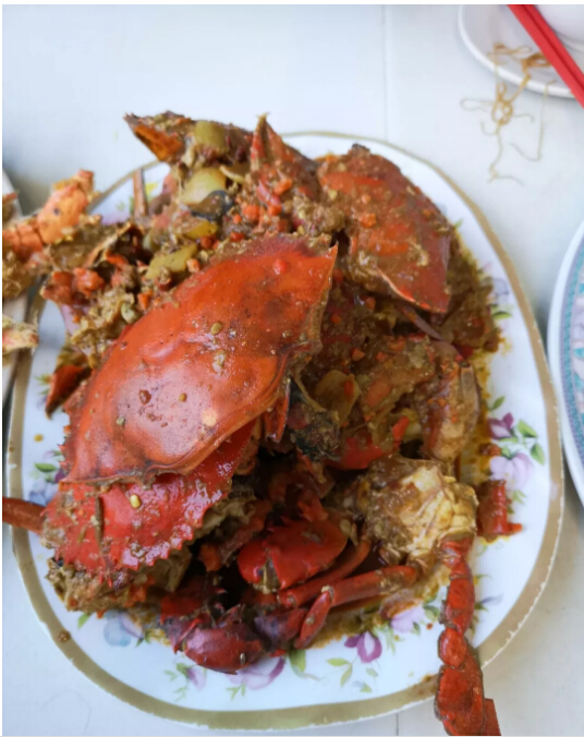 從軍艦島回到鎮(zhèn)上,我們就回民宿抓緊時(shí)間洗漱,去街上買(mǎi)了大龍蝦、皮皮蝦、海蟹,拿到也是很有名的天旺海鮮樓加工制作。買(mǎi)海鮮的過(guò)程參照昨天提到的,七八位賣(mài)海鮮的當(dāng)?shù)厝四弥鞣N各樣的海鮮圍著我們,簡(jiǎn)直是來(lái)不及應(yīng)對(duì)。再加上要趕飛機(jī),所以我們的海鮮餐沒(méi)有狠砍價(jià),最后我們的海鮮大餐創(chuàng)了我們?cè)隈R來(lái)的最奢侈一餐——561元馬幣,相當(dāng)于4個(gè)人吃了900塊錢(qián)人民幣,心疼荷包三秒鐘。不過(guò),天旺加工的味道也很棒了,我們四個(gè)人吃不完,還打包回亞庇了呢。