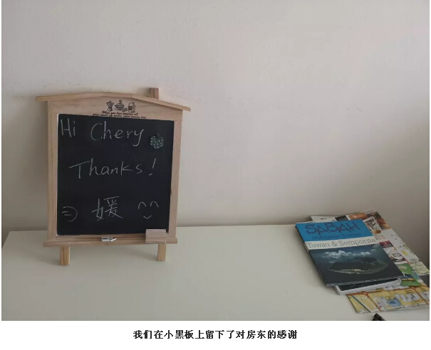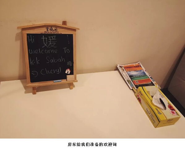 搭乘晚上的飛機(jī)回到亞庇,我們提前一天在愛(ài)彼迎上訂好了套房。下面必須安利一波我們?cè)趤啽幼〉奶追?!這個(gè)Lazy.Elephant套房,它位于哥打京那巴魯市,是中央商務(wù)區(qū)天空套房。它不僅有兩扇大大落地窗可以觀(guān)賞城市景觀(guān)和絕美日落,還能共享sky hotel的INFINITY游泳池,健身房和天空休息室!有這樣的套房,可以提供六人居住,一晚只要500左右人民幣,太適合家庭或者組團(tuán)居住了!房東Chery人超好,因?yàn)槲覀兊絹啽右呀?jīng)十一點(diǎn)多了,她怕我們找不到地方,把每一個(gè)需要拐彎和注意的地方都用照片拍下來(lái)標(biāo)注好箭頭,提醒我們應(yīng)該怎么走。到達(dá)房間后,能夠看到她在客廳小黑板上寫(xiě)了歡迎詞,貼心的寫(xiě)了姐姐的中文字“媛”,讓人一進(jìn)門(mén)就感覺(jué)特別溫暖。