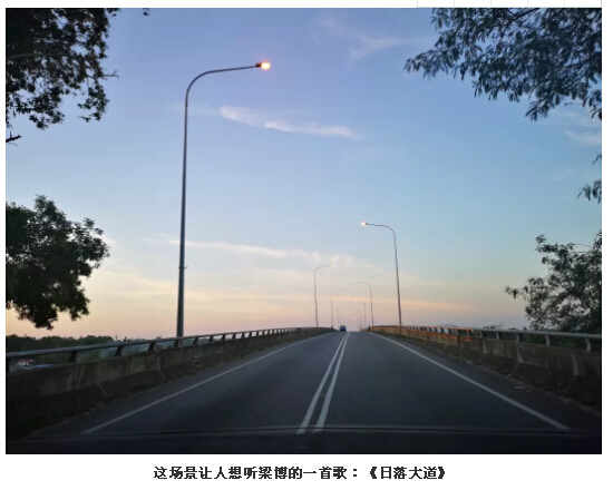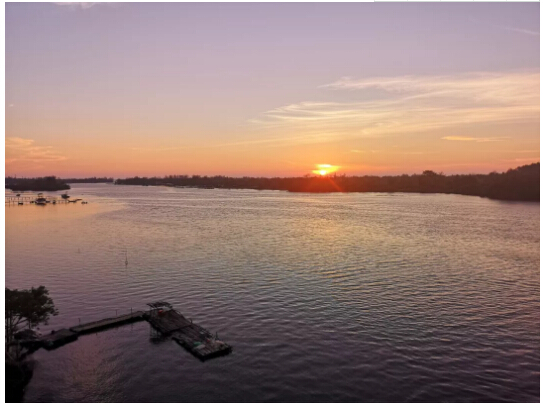 一路上繞來(lái)繞去,到達(dá)以后卻愣是沒(méi)找到入口,后面找到隔壁一家釣魚(yú)場(chǎng)的工作人員一問(wèn),才知道原來(lái)龍尾灣是早上開(kāi)船過(guò)去,下午就坐船回來(lái)了,我們那個(gè)時(shí)間去,連工作人員都已經(jīng)下班回家了。好吧,那我們就往回趕,希望能在太陽(yáng)下山之前找到一個(gè)沙灘再看一次落日。最后,沙灘沒(méi)找到,我們干脆停在了一座大橋邊上,在大橋上看完了我們?cè)谏嘲蛠啽拥淖詈笠粋€(gè)落日。雖然不像沙灘邊那么絕美壯觀(guān),卻也是別有一番滋味。