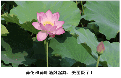 在微風的吹拂下,荷花和荷葉隨風擺動。整個花隨風舞,風讓花舞的景象,構(gòu)成一幅夏日小荷動圖。憶起以前讀過的一首詩,“荷花宮樣美人妝,荷葉臨風翠作裳?!痹娎锏拿谰霸诖丝陶芾毂M致地展現(xiàn)在眼前,真是讓人嘆為觀止!