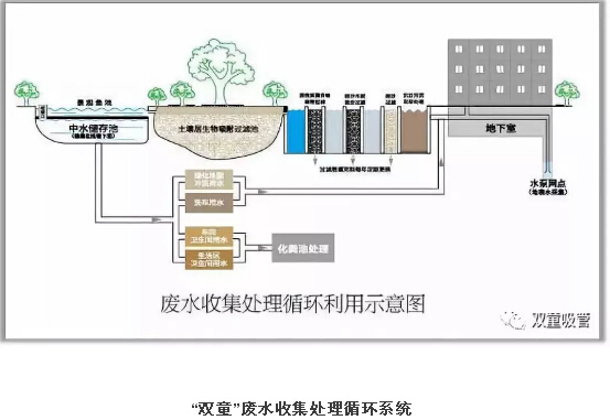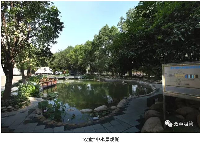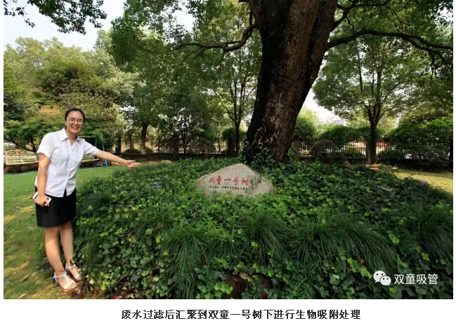 “雙童”景觀湖可不只是美化了環(huán)境,在碧綠的湖水下面還藏著中水儲存池呢!通過廢水收集處理循環(huán)利用系統(tǒng),“雙童”將企業(yè)所有的工業(yè)廢水、生活污水在過濾后匯聚到“雙童一號樹”下進行生物吸附處理,再流入景觀池下面的中水池中。
