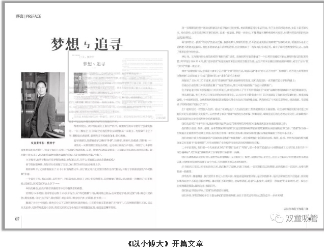 親愛的粉絲們,吸管妞今天要給大家推薦“雙童”企業(yè)文化叢書《以小博大》中的開篇好文《夢想與追尋》。本篇文章由“雙童”當(dāng)家人樓仲平親筆撰寫,他用平實(shí)樸素的語言講述了他的人生經(jīng)歷和創(chuàng)業(yè)經(jīng)歷,講述了他對于夢想和追尋話題所引發(fā)的思考和感悟, 希望能對大家有所幫助和啟迪!