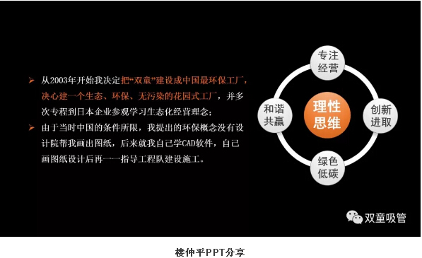 很多來“雙童”參觀的客人們,都會驚嘆于我們這座零排放無污染的生態(tài)節(jié)能工廠,并不斷追問:“到底是哪家建筑設(shè)計公司給你們設(shè)計的廠房?”每當(dāng)此時,吸管妞都會自豪地回答:“其實都是我們當(dāng)家人樓總自己設(shè)計的廠房!”那么,早在十多年前,整個社會環(huán)境都沒有倡導(dǎo)節(jié)能環(huán)保理念的當(dāng)時,“雙童”樓仲平為何會選擇帶領(lǐng)企業(yè)走這條發(fā)展道路呢?這背后也有一個精彩的故事。下面,吸管妞就借“雙童”樓仲平在浙江大學(xué)授課時的一段視頻,揭秘其中的奧秘!