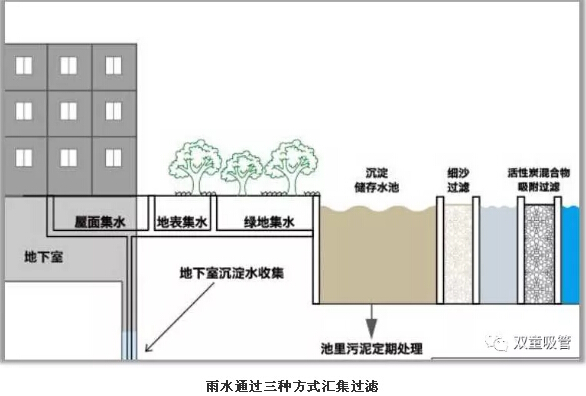 如此實(shí)用的系統(tǒng)是如何形成的呢?秘訣就是在屋頂、路面、綠化帶中做好雨水收集點(diǎn),用地下管道把它們連成一個(gè)整體,經(jīng)過(guò)科學(xué)過(guò)濾,匯集到一個(gè)占地700多平方米、總裝水容量近4000噸的雨水收集池。