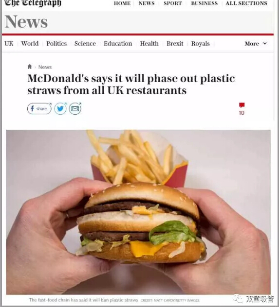 近日,麥當(dāng)勞要停用塑料的新聞引起巨大轟動。據(jù)媒體報道:麥當(dāng)勞宣布從今年5月開始,1300多家麥當(dāng)勞開始停用塑料吸管,試用紙質(zhì)吸管!這項計劃將從英國麥當(dāng)勞開始實行!麥當(dāng)勞英國首席執(zhí)行官PaulPomroy在接受采訪時說,麥當(dāng)勞使用的塑料吸管其實是可回收的,但越來越多的消費者覺得用塑料吸管對環(huán)境不好,顧客方面的督促讓麥當(dāng)勞最終做出了這樣的決定?!半p童”意識到:塑料產(chǎn)業(yè)面臨徹底顛覆,吸管產(chǎn)品的行業(yè)革命已經(jīng)來襲!