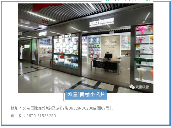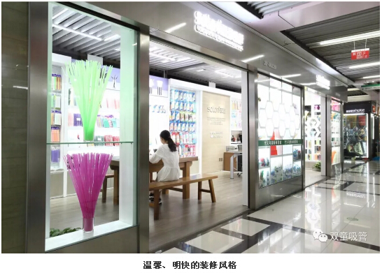 走進“雙童”商鋪,琳瑯滿目的吸管在明亮燈光的照耀下顯得尤為精致,細膩、溫馨、明快、簡約的裝修風(fēng)格則給了客戶更好的視覺體驗,現(xiàn)代感十足!