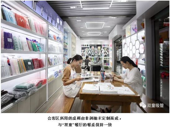 商鋪內(nèi)共設(shè)置了可降解吸管、創(chuàng)新吸管、藝術(shù)吸管、超市流通吸管等品類的吸管產(chǎn)品展示區(qū),以及辦公區(qū)、會客區(qū)、茶水接待等區(qū)域,可謂是分工明確,井然有序!