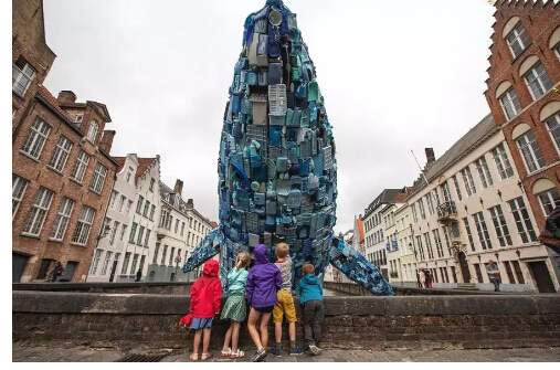 該作品以躍姿鯨魚的被安置在比利時城市的主要運(yùn)河中供游客參觀,這一令人印象深刻的裝置作品旨在讓人們關(guān)注海洋中數(shù)量巨大的塑料廢棄物等海洋垃圾壞境問題。