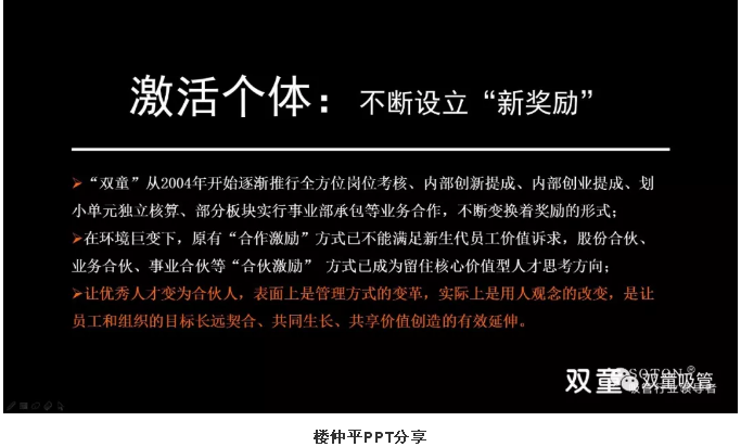 “所以,我們基本不用空降兵。這批人是我?guī)С鰜?lái)的,就深受我的影響,在乎工作、可以放下身段,整體素質(zhì)遠(yuǎn)超第一代管理者。這批第二代管理者培養(yǎng)起來(lái)后,至少打開了‘雙童’未來(lái)二十多年企業(yè)持續(xù)發(fā)展的窗口?!?/span>