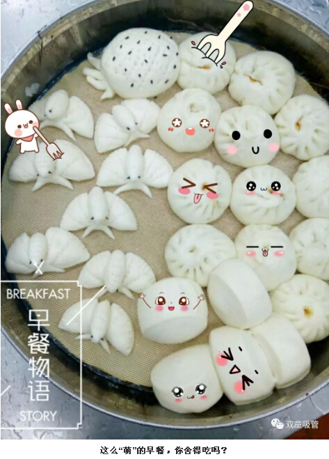 饅頭、煎蛋、粽子、粥、油條、豆?jié){……