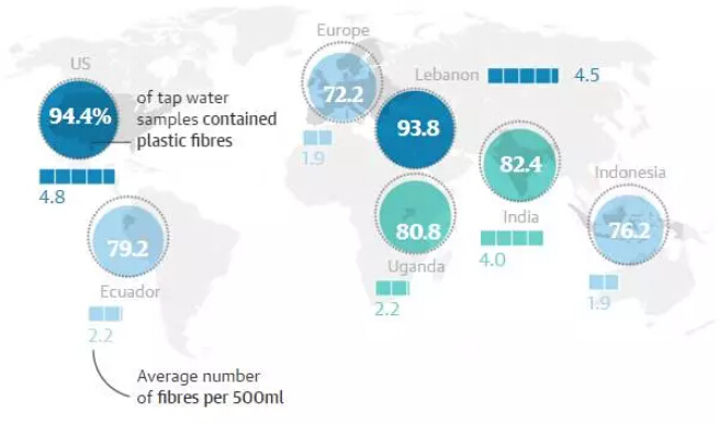 據(jù)外媒報道,美國非營利性機構(gòu)Orb Media科學家對數(shù)十個國家的自來水樣本調(diào)查研究后發(fā)現(xiàn),全球83%的自來水中含有塑料微粒,這意味著數(shù)十億人的飲用水受到了塑料污染。