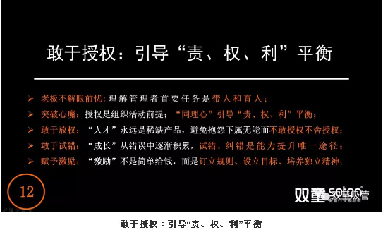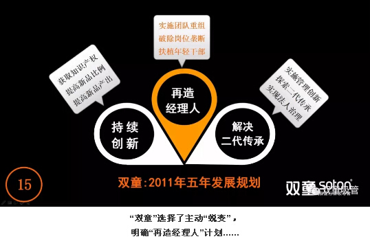 樓仲平也以“雙童”為例,講述了“雙童”的“蛻變”過程,通過“再造經(jīng)理人”計劃,優(yōu)化團(tuán)隊(duì)結(jié)構(gòu),激發(fā)團(tuán)隊(duì)活力和創(chuàng)新意識。