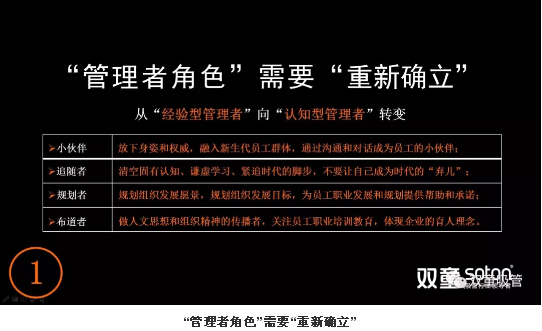 最后,樓仲平也通過四個關(guān)鍵詞引導(dǎo)大家在巨變時代,要重新確定管理者新角色,從“經(jīng)驗(yàn)型管理者”向“認(rèn)知型管理者”轉(zhuǎn)變!