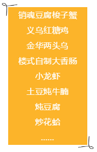 銷魂豆腐梭子蟹義烏紅糖雞金華兩頭烏樓式自制大香腸小龍蝦土豆燉牛腩燉豆腐炒花蛤……